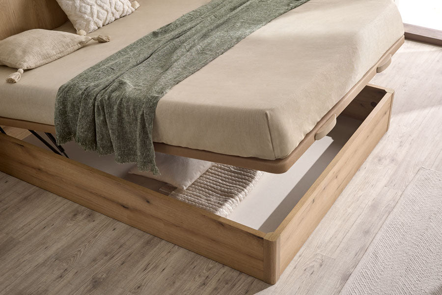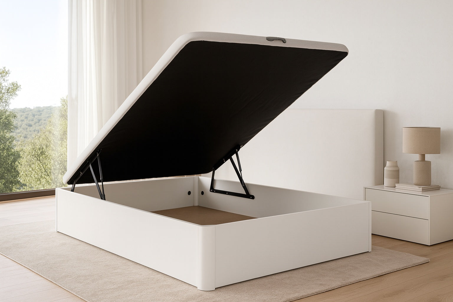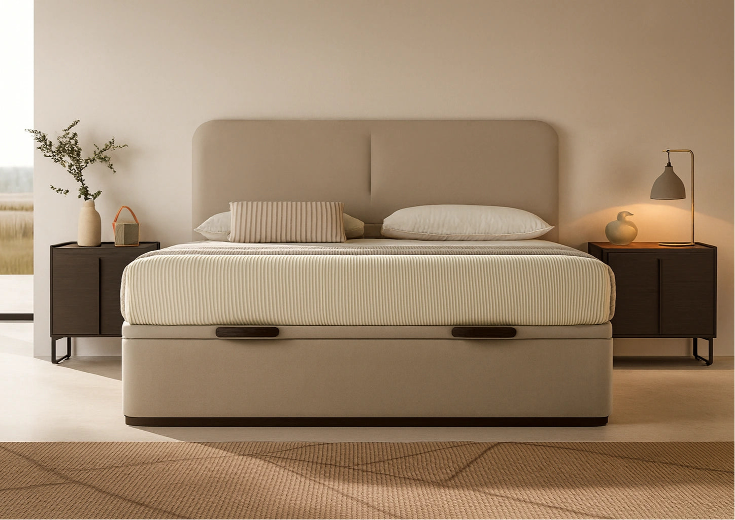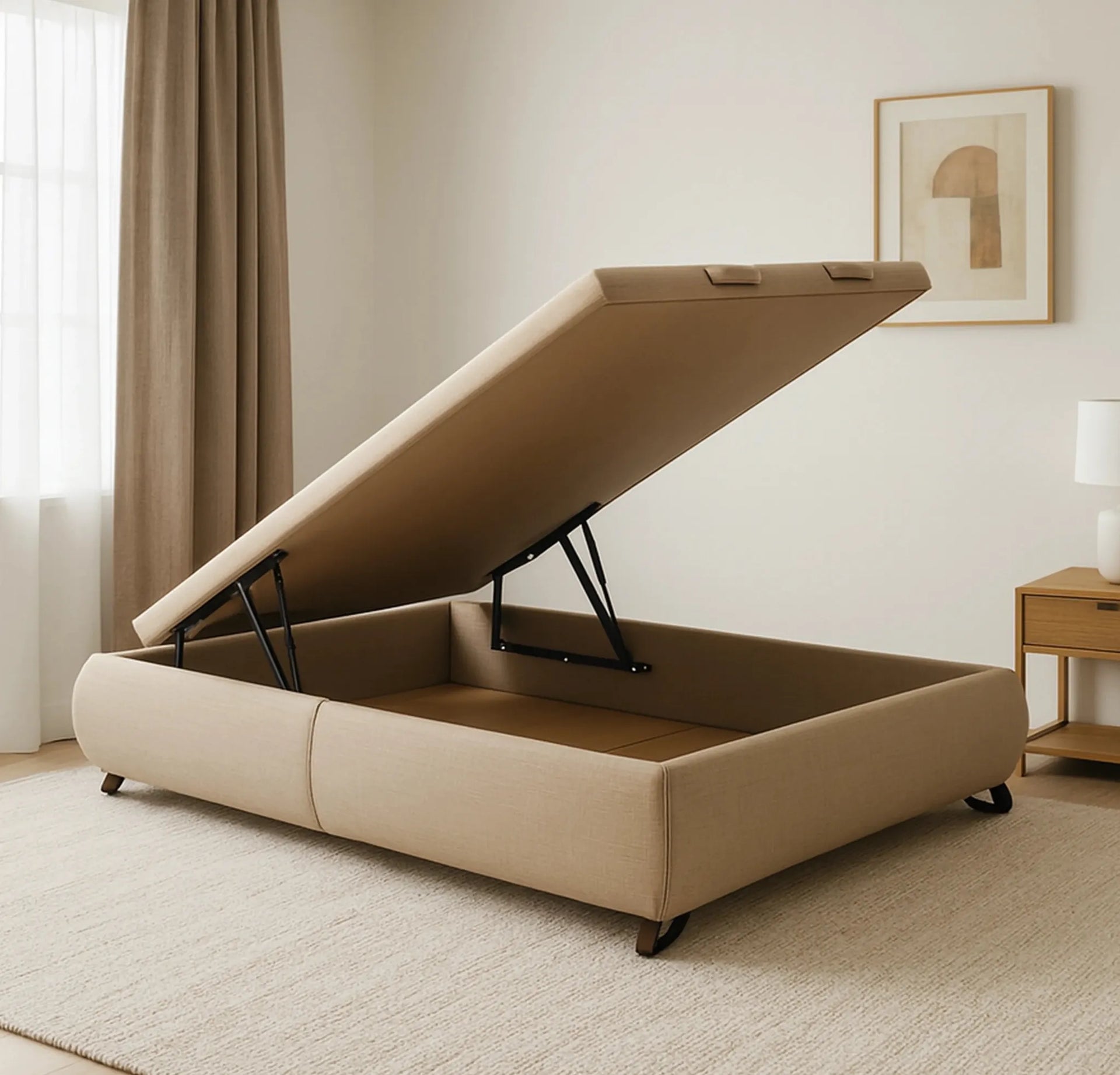 Un espacio oculto que multiplica el orden y la calma. Con nuestros canapés abatibles, cada manta, cojín o prenda encuentra su lugar, dejando tu habitación despejada y acogedora.