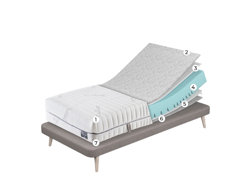 El colchón VISSUTO Articulado está diseñado para ofrecer comodidad y adaptabilidad total. Su núucleo de HR de alta densidad perfilada, combinado con fibras hipoalergénicas y tejido Strech transpirable, proporciona una perfecta armonía de soporte, suavidad y flexibilidad.