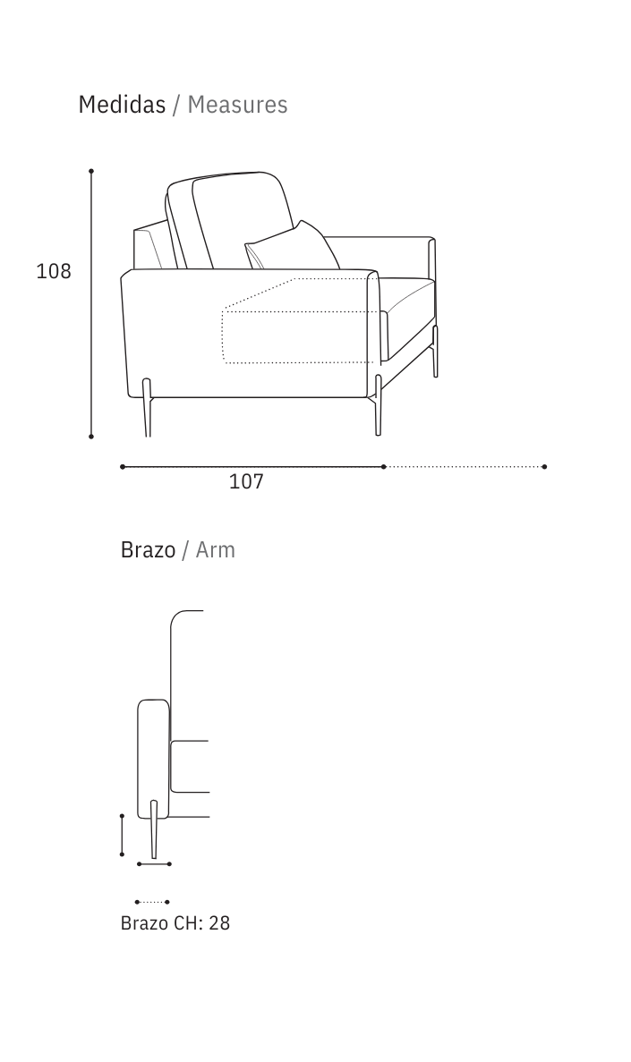 Asiento relleno de goma de 35kg con fibra hueca siliconada, asegurando una sensación envolvente y mullida.